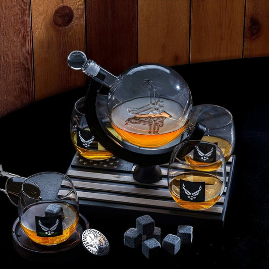 U.S. Airforce Whiskey Decanter Set with 4 Liquor Glasses Set