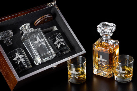 Aviator Pilot Personalized Classic Whiskey Decanter with Glasses Gift Set