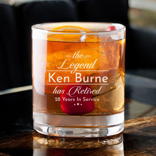 The Legend Has Retired Personalized Rocks Whiskey Glass