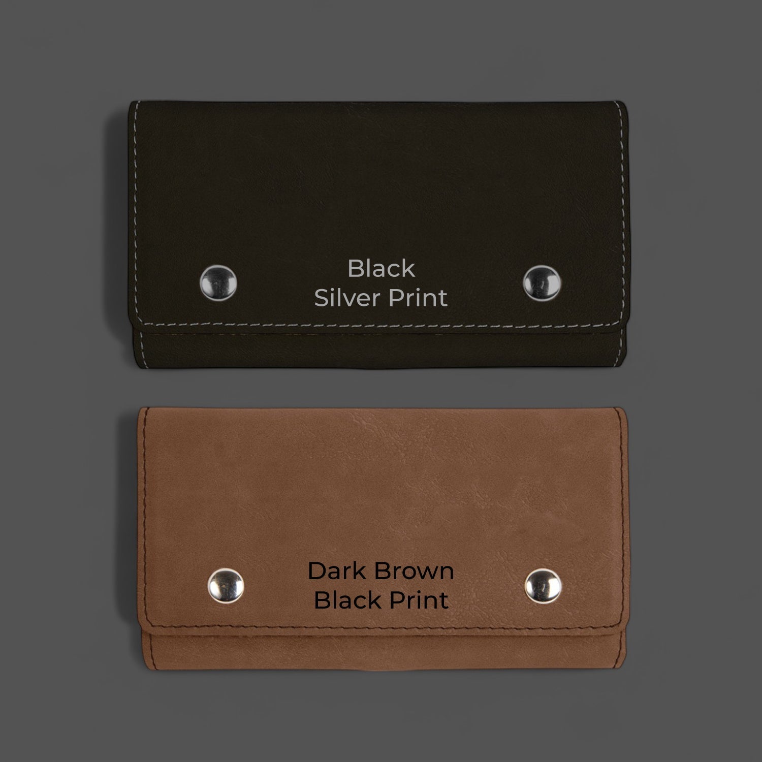 Bring style and fun wherever you go with this Personalized Leather Travel Case with Playing Cards and Dice Set, a refined gift perfect for game nights, travel, or casual gatherings. The sleek faux leather case with a soft suede-like lining neatly stores two decks of playing cards and five red dice, offering both portability and sophistication.
