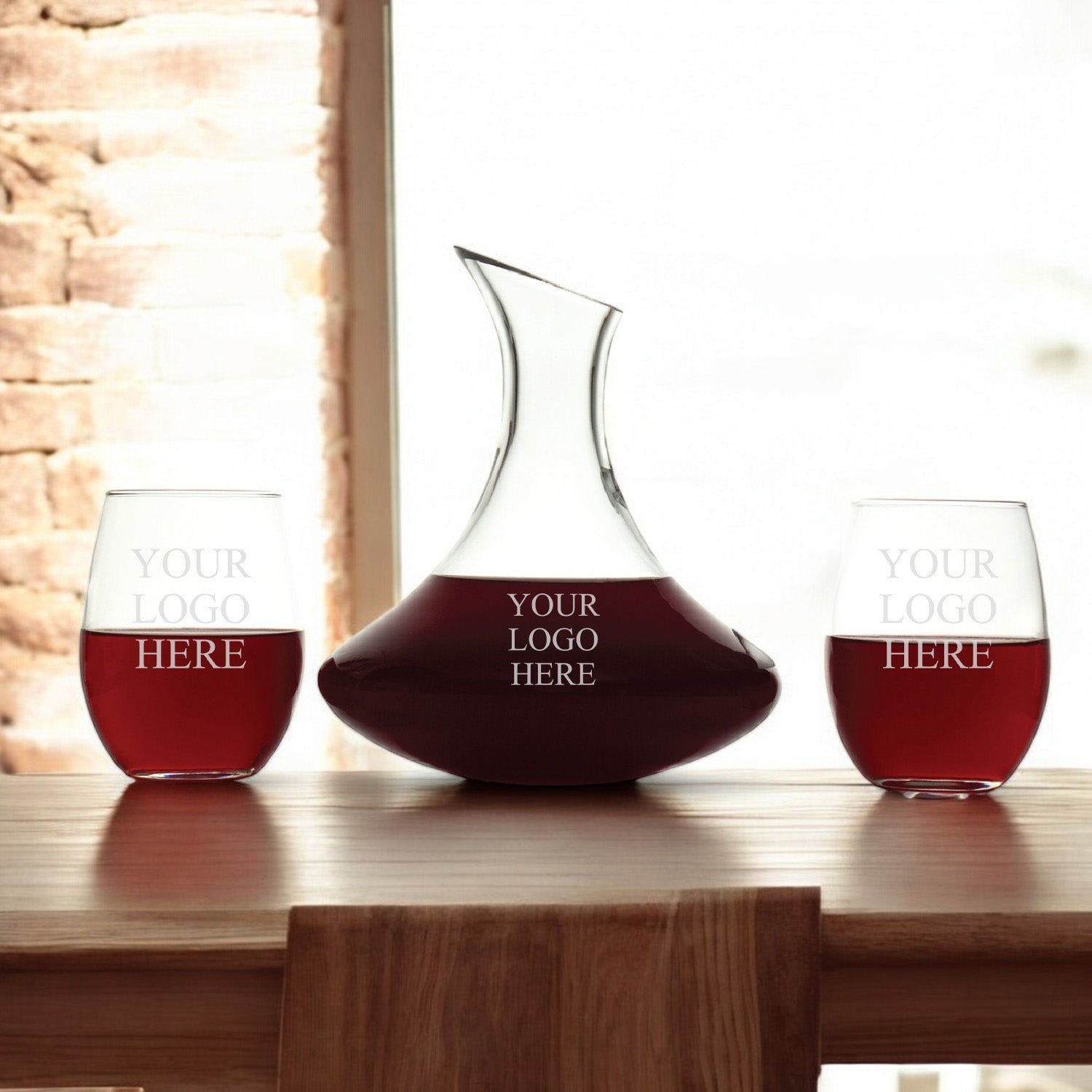 Custom Logo Personalized Wine Decanter with Stemless Wine Glass Set
