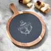 Elevate your next gathering with this impressive Personalized round serving board, meticulously crafted from rich acacia wood and natural slate. Its unique paddle-style handle not only adds a touch of elegance but also enhances functionality, making it ideal for serving cheeses, charcuterie, or delightful small bites at any celebration. Personalization transforms this serving board into a heartfelt gift or a standout piece in your hosting collection, ensuring every occasion is memorable and extraordinary. A perfect personalized gift for a housewarming, birthdays, or any special occasion.