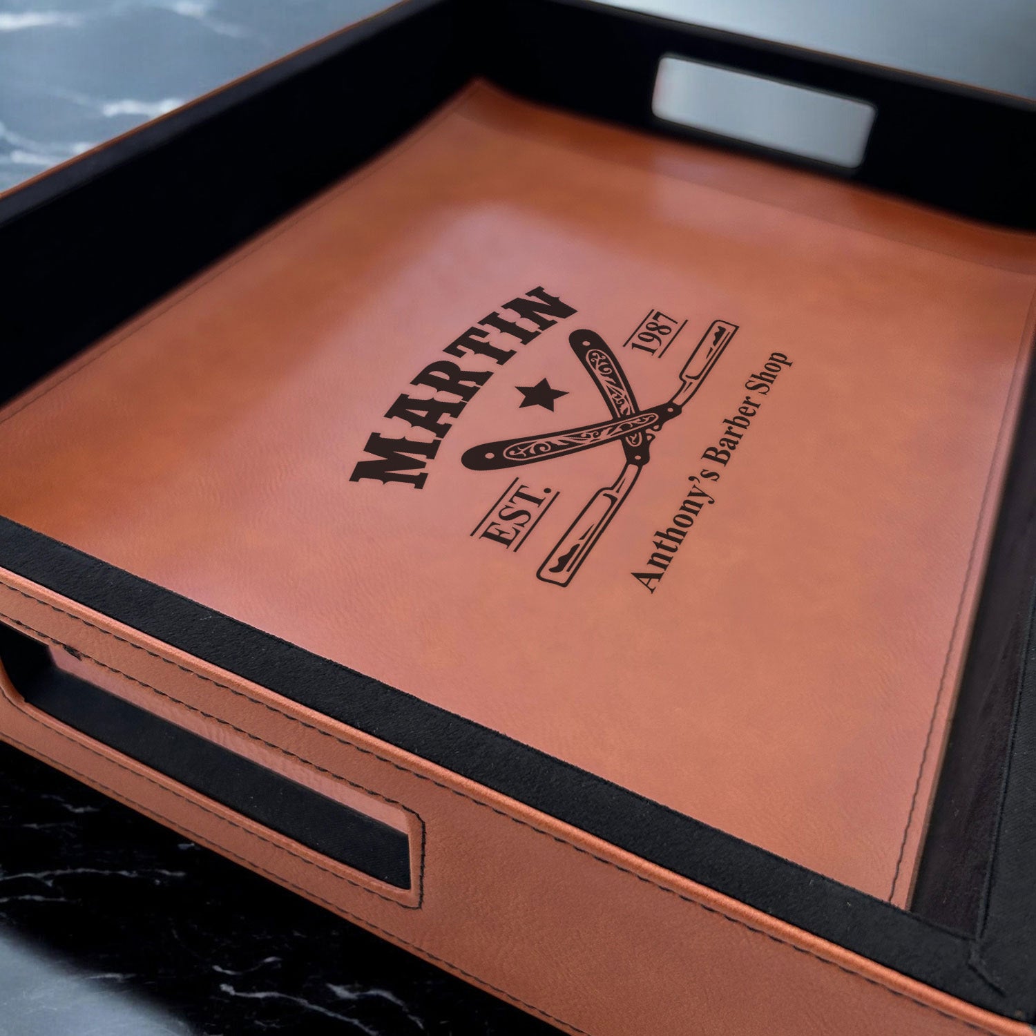 This Rectangle Leather Serving Tray is a stylish and versatile addition to any home, perfect for both entertaining and organization. Designed for personalization, it comes in a variety of leather colors and designs to complement any décor. Whether used for serving drinks, displaying décor, or organizing essentials like keys and mail, its sleek silhouette and cutout handles add elegance and practicality to any space. Customize it to create a unique and functional statement piece for your home.