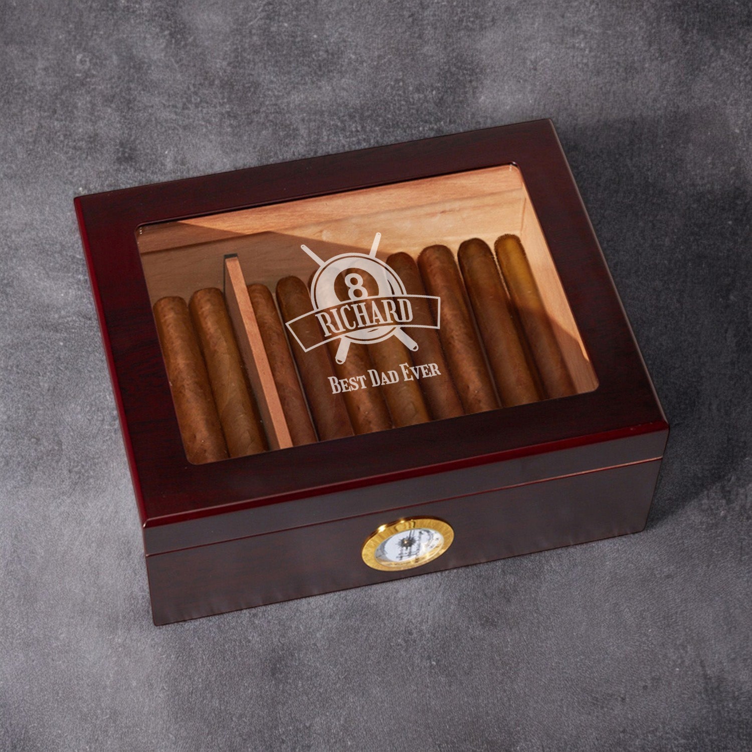 Pool Billiard Eight-Ball Personalized Cigar Humidor 50 Count