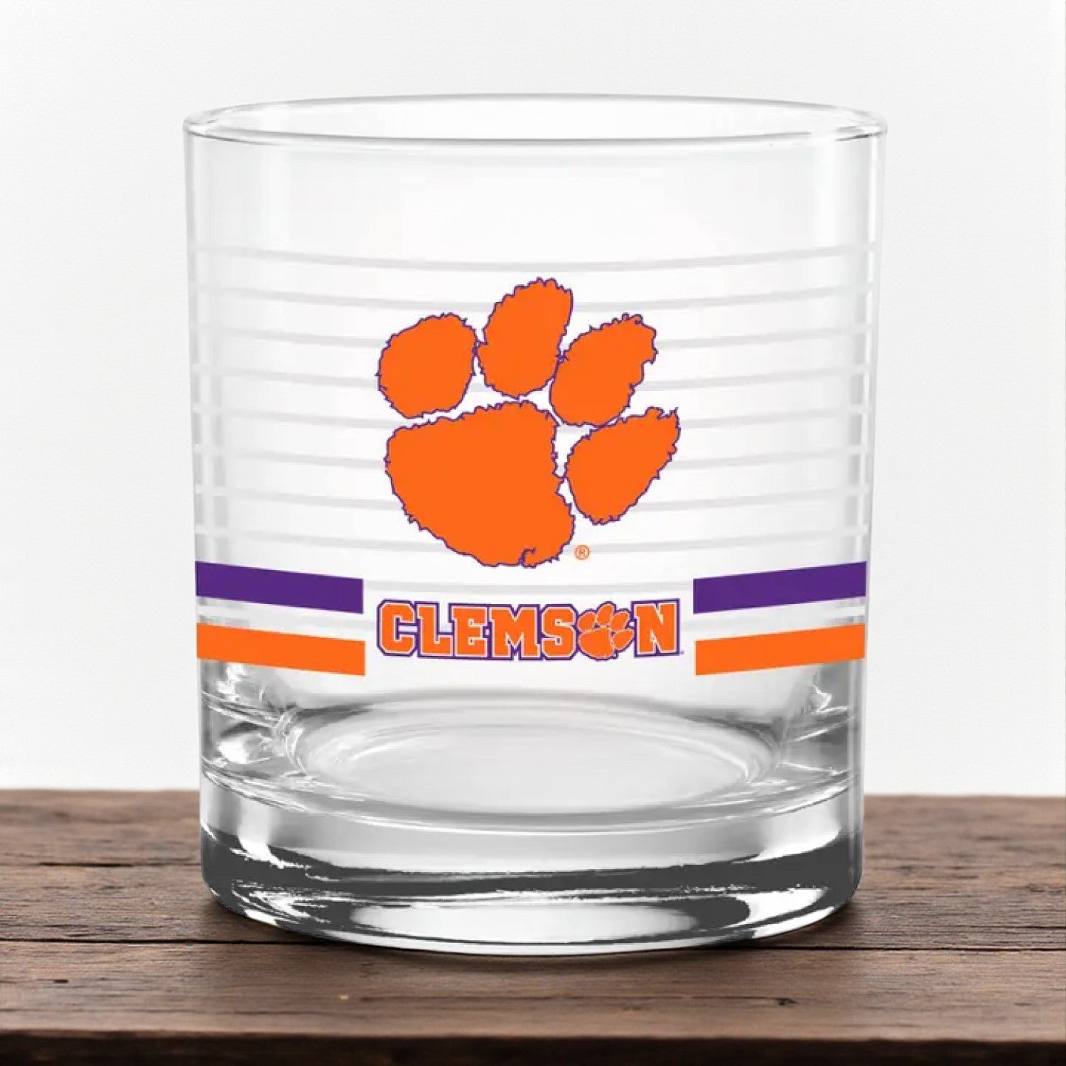 Raise a toast to your team spirit — and to the good times still to come — with this officially licensed Clemson Tigers Ring Rocks Glass Set. Featuring the iconic Clemson University logo, each 14oz glass showcases stunning, textured artwork created with a proprietary 12-pass printing technique, giving it a unique raised-ring texture you can actually feel.