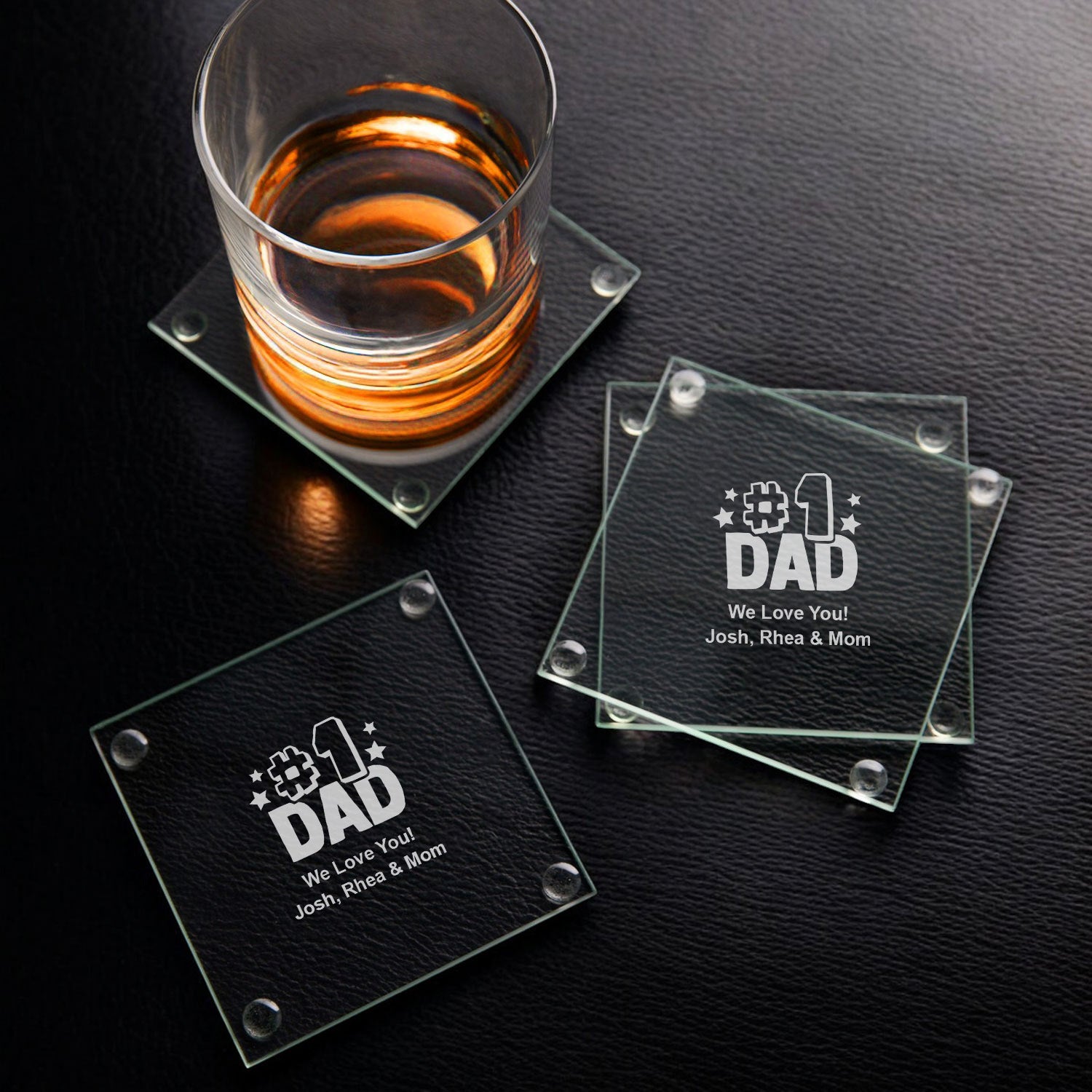 From The Gentlemen’s Gifts collection, our Dad Personalized Glass Coasters make every drink special for him. Featuring a classic engraved design with your custom message, these coasters are perfect for Father’s Day, birthdays, or just because.