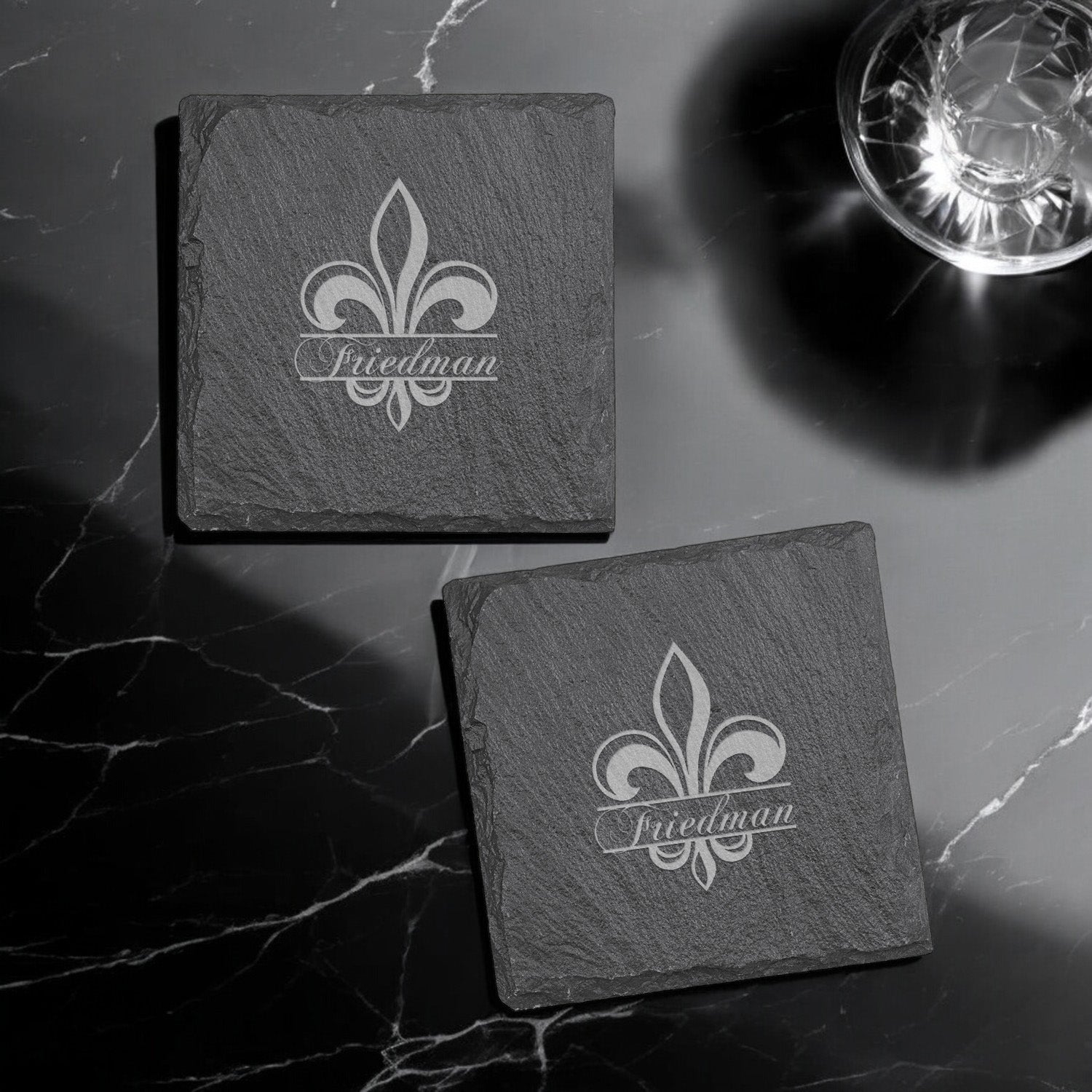 Fleur De Lis Personalized Slate Coasters, Set of 4