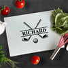Designed for both style and durability, this Golf personalized tempered glass cutting board is a must-have for cooking enthusiasts. Featuring a textured cutting surface and a smooth white back, it adds a sleek touch to any kitchen while providing a functional prep area. Perfect as a personalized gift for housewarming, weddings, anniversaries, retirements, or any special occasion.