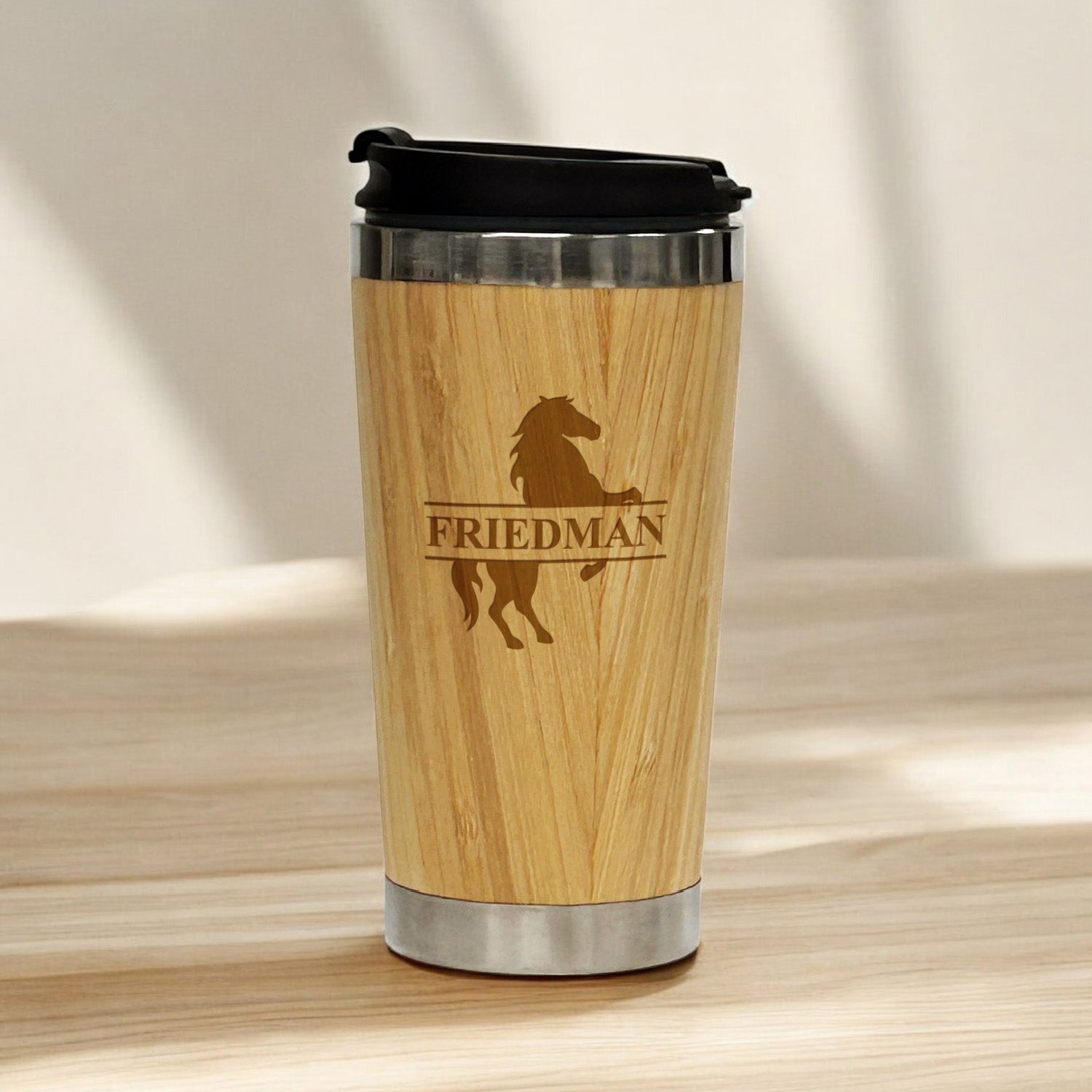 Equestrian Horse Personalized 15 oz Bamboo Stainless Steel Tumbler