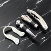 • Includes Foil cutter, corkscrew with fold-out knife, decanting pourer and wine stopper. The foil cutter is silver plastic. All other tools are stainless steel.