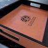 This Rectangle Leather Serving Tray is a stylish and versatile addition to any home, perfect for both entertaining and organization. Designed for personalization, it comes in a variety of leather colors and designs to complement any décor. Whether used for serving drinks, displaying décor, or organizing essentials like keys and mail, its sleek silhouette and cutout handles add elegance and practicality to any space. Customize it to create a unique and functional statement piece for your home.