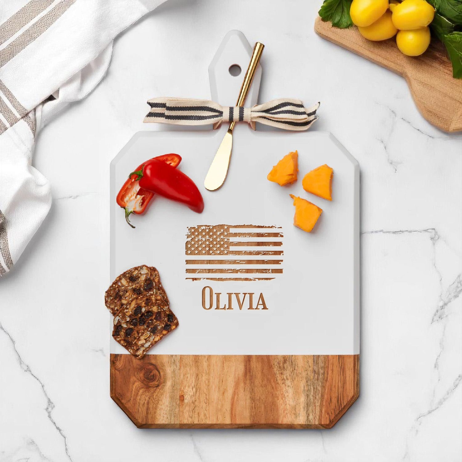 Patriotic Military Personalized Charcuterie Board with Spreader