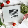 Designed for both style and durability, this Patriotic personalized tempered glass cutting board is a must-have for cooking enthusiasts. Featuring a textured cutting surface and a smooth white back, it adds a sleek touch to any kitchen while providing a functional prep area. Perfect as a personalized gift for housewarming, weddings, anniversaries, retirements, or any special occasion.