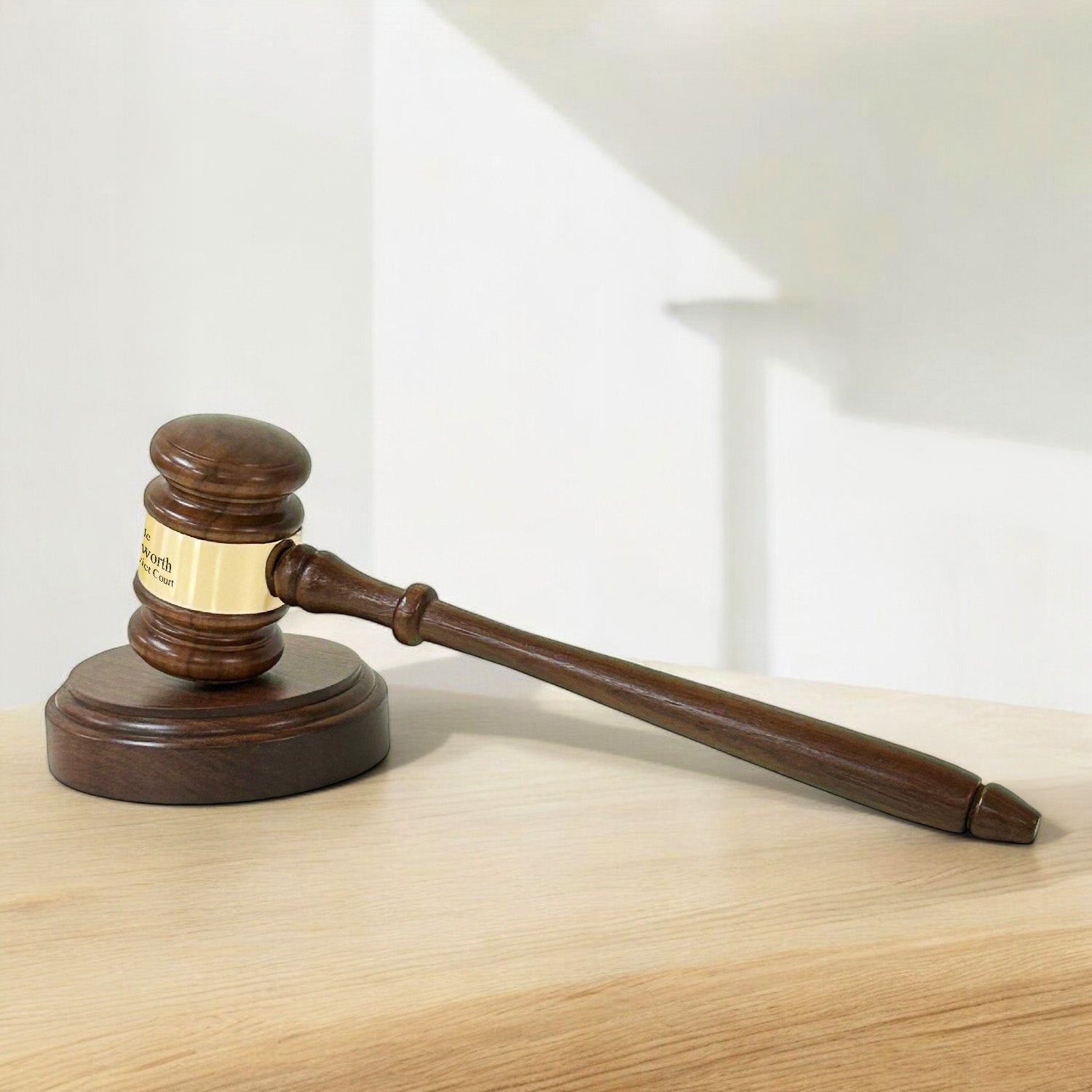 This Personalized Wood Gavel with Wood Base Set is an elegant and practical recognition tool, ideal for honoring individuals who have achieved excellence. Crafted from rich walnut, the gavel sits securely within a matching block, creating a stunning display that adds a touch of sophistication to any ceremony or office. Perfect for awards, presentations, or as a keepsake, this set combines functionality with aesthetic appeal, making it an excellent choice for celebrating success and leadership.
