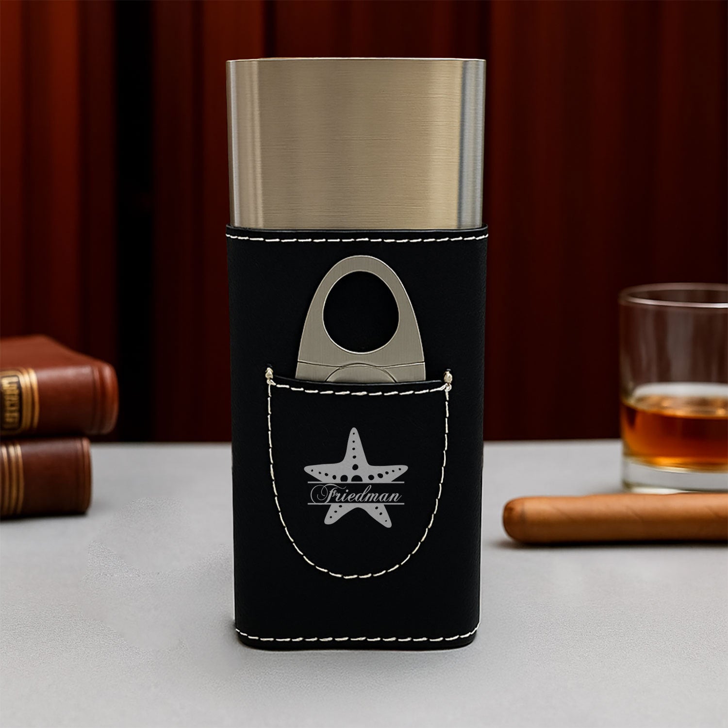 Elevate any cigar lover’s experience with this Starfish Personalized Travel Cigar Case featuring a built-in stainless steel cutter — a sleek and functional gift that makes every smoke feel special. Designed for convenience and durability, the case securely holds cigars while keeping them fresh wherever life takes you. The integrated cutter fits neatly inside, making it the perfect all-in-one companion for travel, golf outings, or a relaxing night in.