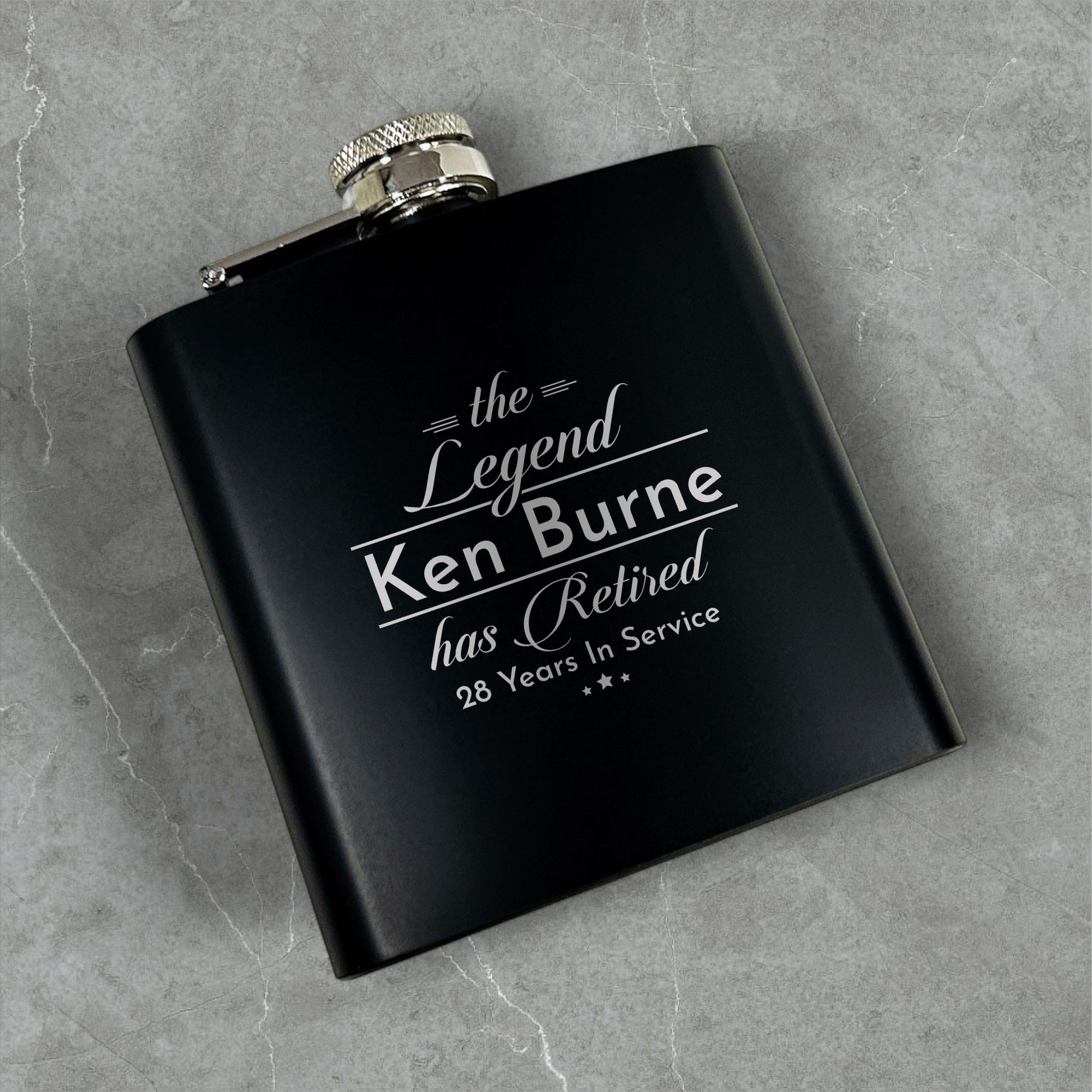 Toast to a legendary career with The Legend Has Retired Personalized Metal Flask, a sleek and durable keepsake perfect for celebrating retirement in style. Crafted from high-quality stainless steel, this 6 oz. flask features a slim, curved design that fits easily in a pocket, making it ideal for travel, events, or casual moments of celebration.
